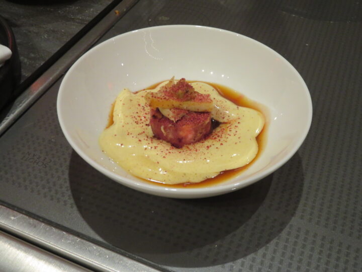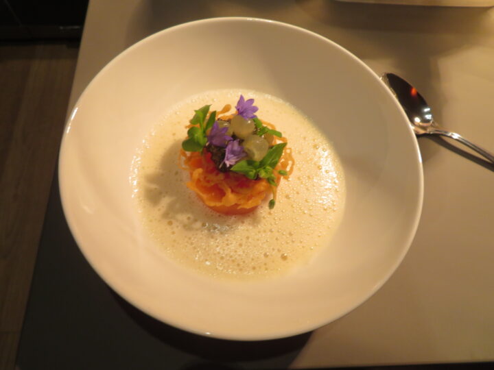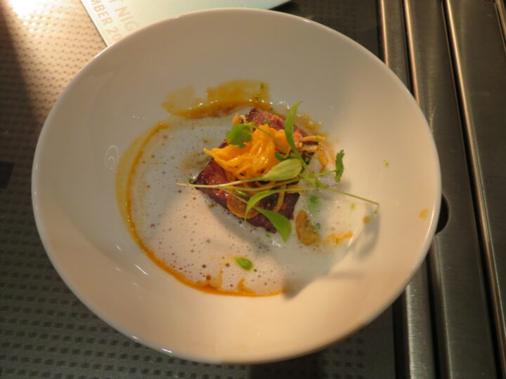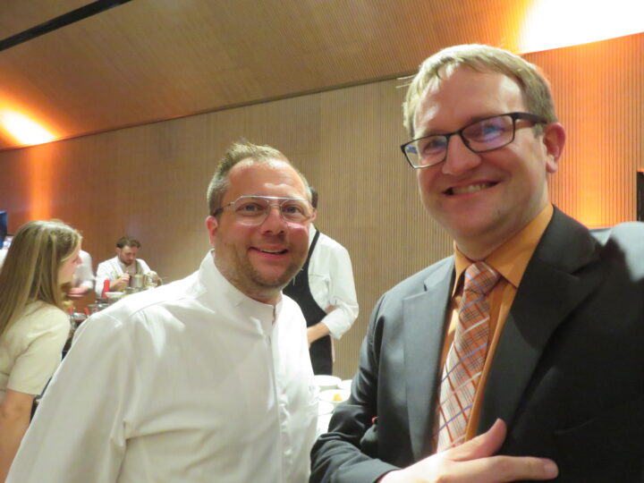 Die breite Streuung der Gerichte empfand ich als besonders wohltuend, denn zu den regelrecht vor Umami strotzenden Gerichten wie etwa Stefan Heilemanns geschmortem Nacken vom Wagyu oder Sebastian Obendorfers Schweinebauch ging Patrick Mahlers hochelegante Interpretation des Rindertatars mit roter Bete und Cassis einen ausgesprochen durchdachten Kontrapunkt ein.