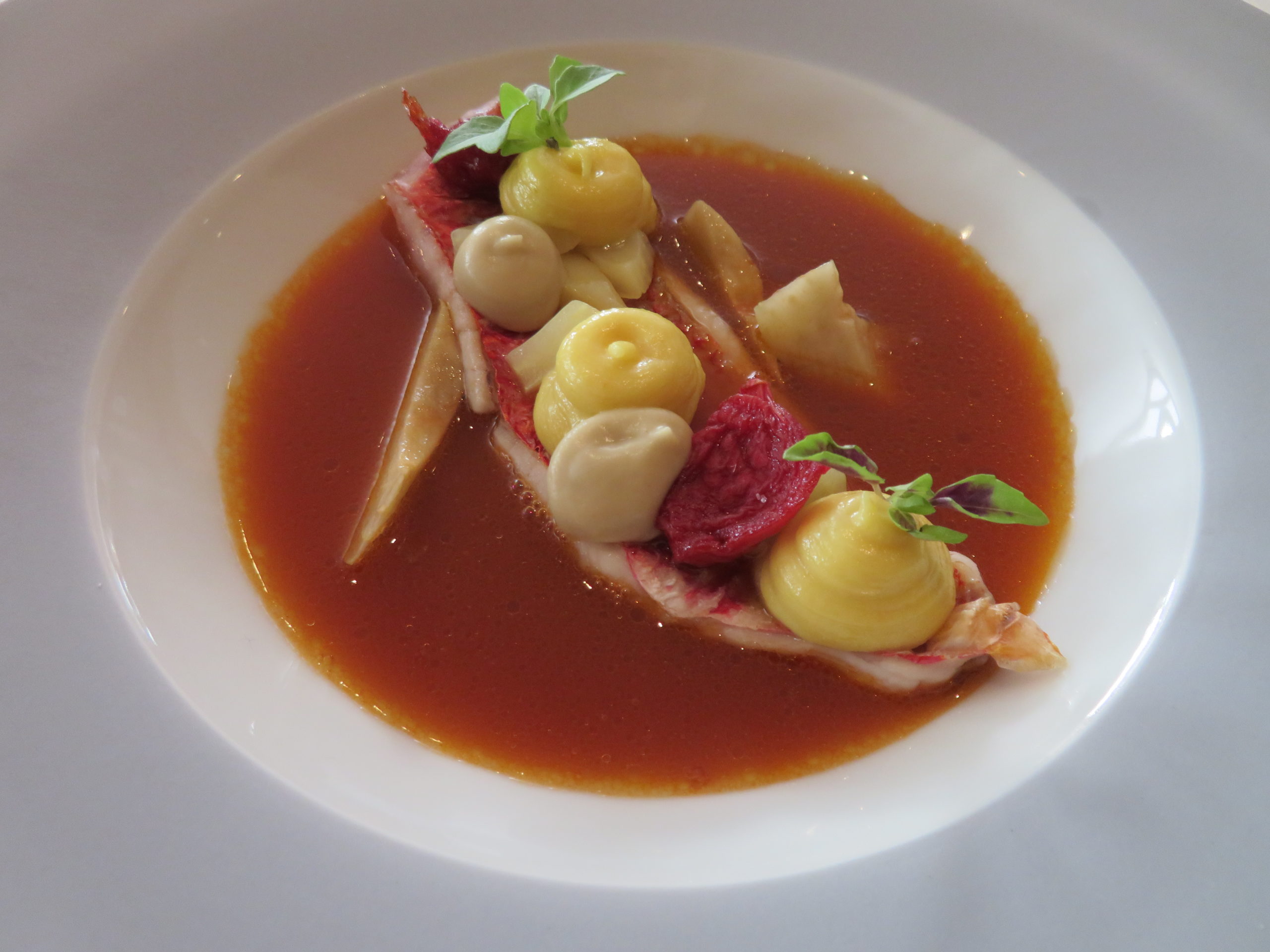 Infos zum einleitenden Bild: ich müsste lange nachdenken, bis mir ein anderer Chef einfiele, dem so was von unverdientermaßen der zweite Michelin-Stern verwehrt wird wie Martin Fauster. Nach vielen Jahren an exponierter Stelle im Königshof am Stachus in München machte er in seiner deutlich bescheidener anmutenden Wolfshöhle in Freiburg einfach da weiter, wo er zuvor aufgehört hatte: nach wie vor ersinnt er atemberaubende Fisch- und Krustentiergerichte, die es in dieser Konstanz und auf solch extraordinärem Niveau nur äußerst selten zu erleben gibt. Optisch mögen sich die Gerichte unscheinbar geben, doch wer jemals seinen Hummer Thermidor oder seine Bouillabaisse verkostet hat, dürfte diese Erlebnisse nie mehr vergessen. Auch sein diesjähriger Fischgang, eine Rotbarbe mit Sauce Rouille und viel mediterranem Kolorit, sprach wieder für seine ehrliche und unprätentiöse Art zu kochen. Wer das im Rausch der Drei- und Zweisterner versäumt, dem entgeht wirklich etwas ganz Besonderes!