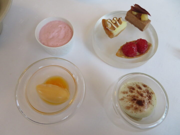 Die Menüfolge beginnt mit den Apéros, gefolgt von je einem kalten und warmen Gruß aus der Küche. Nach der Brotauswahl folgt eine Zusammenstellung unterschiedlichster Vorspeisen, wobei heuer die enorme Spannbreite an unterschiedlichsten Gerichten hervorstach. Nach dem denkwürdigen Hauptgericht und einem Käsegang bilden ein Dessert und die Petits fours den würdigen Abschluss dieser hervorragenden Parade.